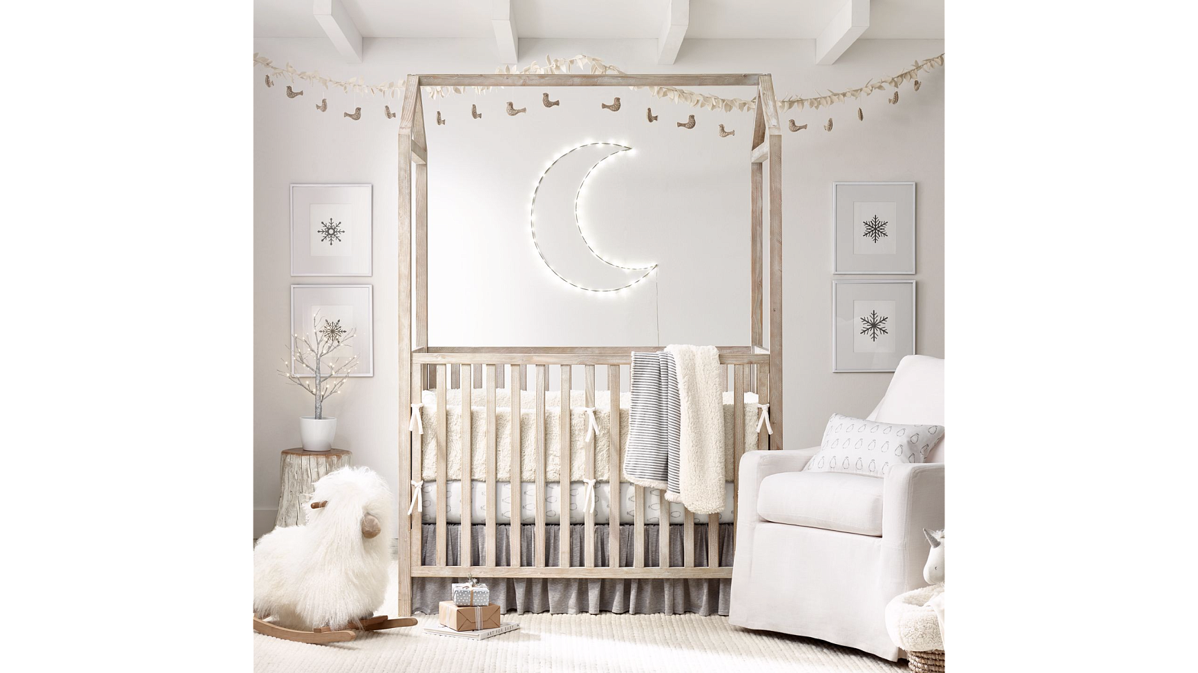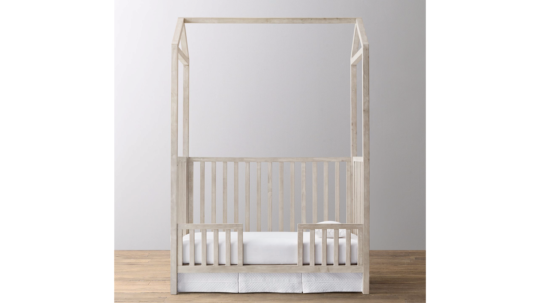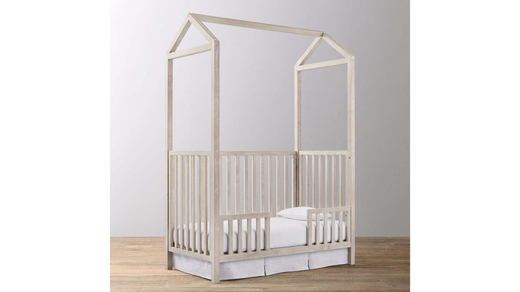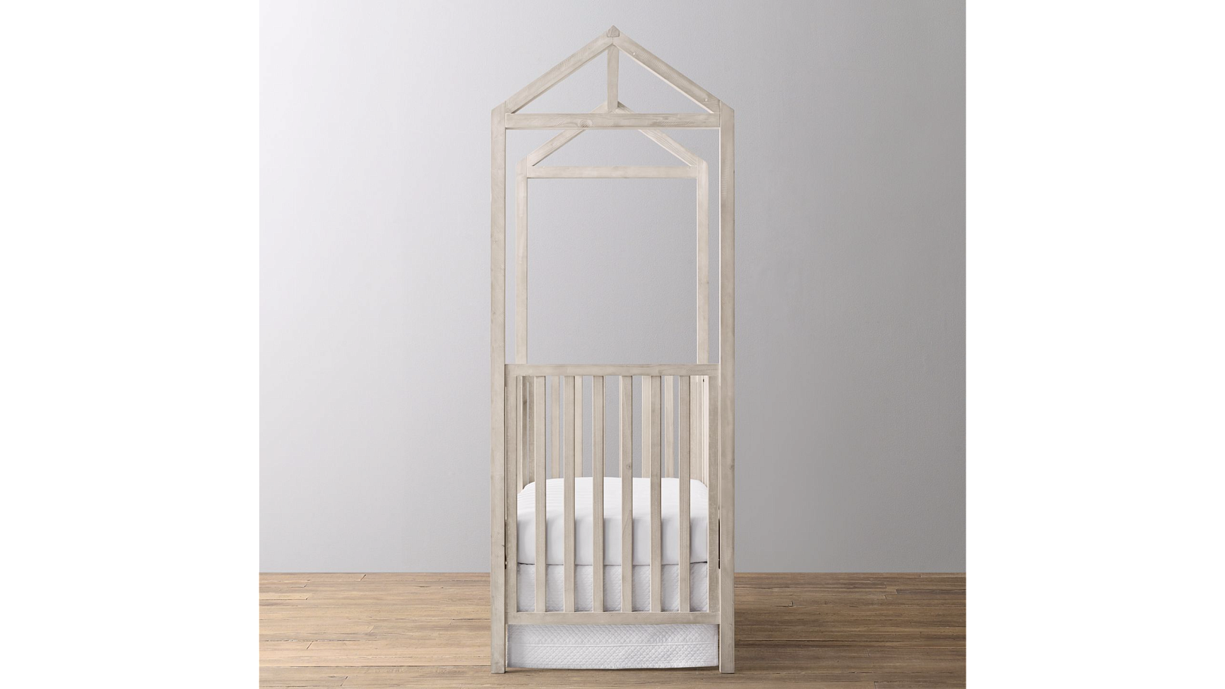 Детская кроватка COLE WEATHERED WHITE CRIB от американского премиум бренда Restoration Hardware выполнена в виде домика. Кроватка изготовляется из твердых пород дерева, высушенных особым образом, и окрашивается вручную. Изделие может быть выполнено в двух вариантах цветов отделки дерева: WEATHERED WHITE ( потертый белый) и Sandwashed Grey ( серо-бежевый) Расцветка Sandwashed Grey - цельная древесина твердых пород со шпоном. Расцветка Weathered White - цельная древесина ели со шпоном. Модель кроватки может трансформироваться, и когда Ваш ребенок подрастает, боковые защитные бортики можно при желании заменить на более низкие и удобные панели, которые приобретаются отдельно. Высота дна кроватки, на которое укладывается матрас, регулируется на 3 уровня: 49 см, 33 см и 20 см (высота над полом) Размеры: Общие размеры: длина - 140 см, ширина - 77 см, высота - 203 см. Высота решетчатого бортика - 82 см. Высота свободного пространства под кроваткой - 15 см. Вес - 40 кг. Размер съемной боковой панели: ширина - 130 см, толщина - 3 см, высота - 34 см. Вес - 4 кг.