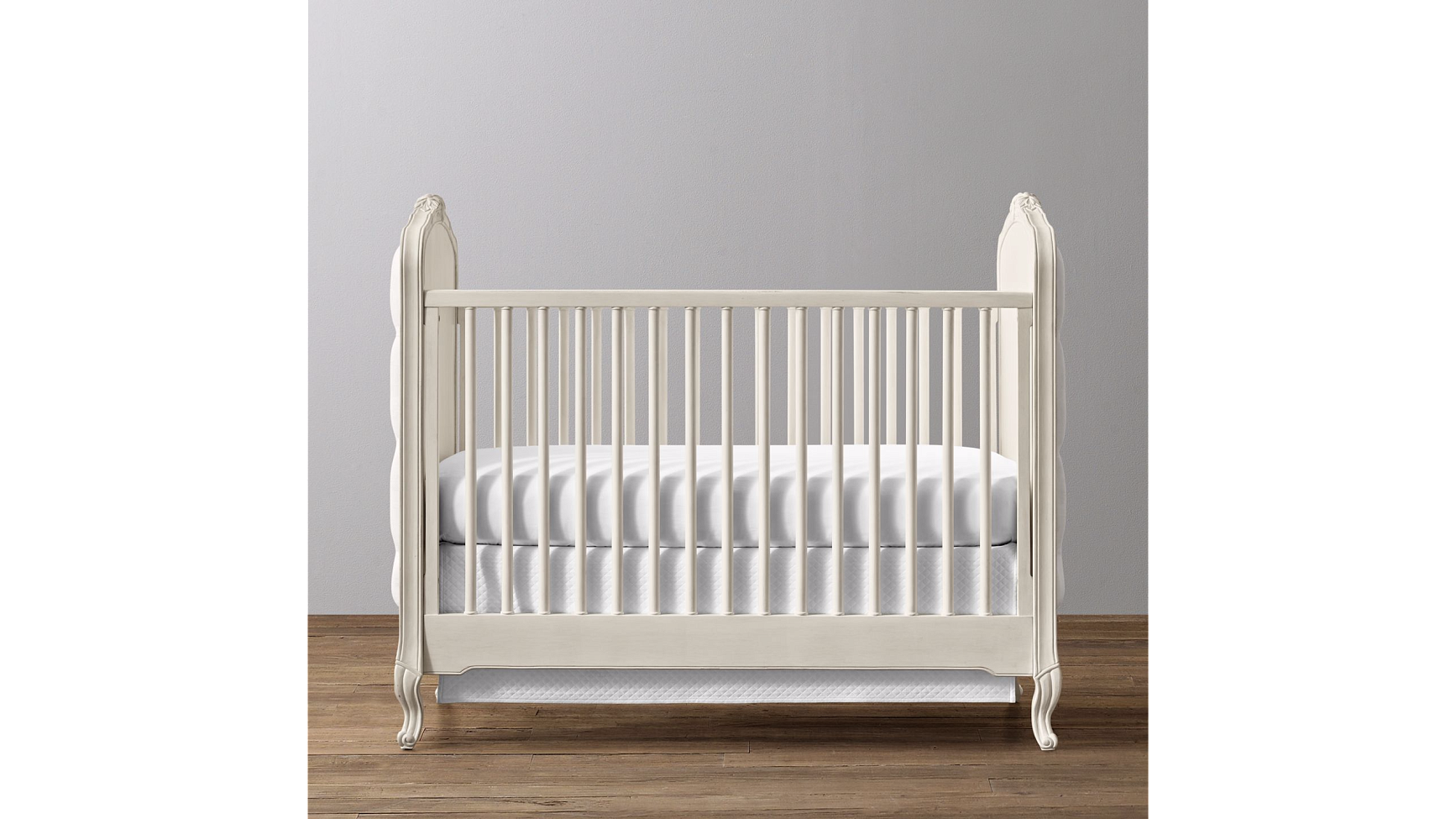 Детская кроватка COLETTE TUFTED CRIB AGED WHITE от американского премиум бренда Restoration Hardware Кроватка изготовляется из твердых пород дерева, высушенных особым образом, и окрашивается вручную. Может быть выполнена в двух вариантах отделки дерева: Aged White (состаренный белый) или Grey Mist (светло-серый) Текстильная обивка выполнена из льна и может быть исполнена в пяти вариантах цветов на выбор: White ( белый), Sand ( песочный), Dove ( серо-бежевый), Mist ( светло-серый ) и Grey ( насыщенный серый) Изделие украшено резьбой и декором в форме цветочных орнаментов, а образ завершают изящные резные ножки. Модель кроватки может трансформироваться, и когда Ваш ребенок подрастает, боковые защитные бортики можно при желании заменить на более низкие и удобные панели, которые приобретаются отдельно. Высота дна кроватки, на которое укладывается матрас, регулируется на 3 уровня: 53 см, 46 см и 32 см (высота над полом) Размеры: Общие размеры: длина - 143 см, ширина - 83 см, высота - 122 см. Высота решетчатого бортика - 99 см. Высота свободного пространства под кроваткой - 15 см. Вес - 54 кг. Размер съемной боковой панели: ширина - 132 см, толщина - 2 см, высота - 42 см. Вес - 4 кг.