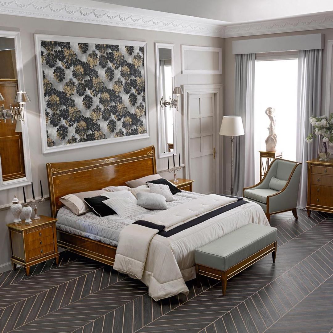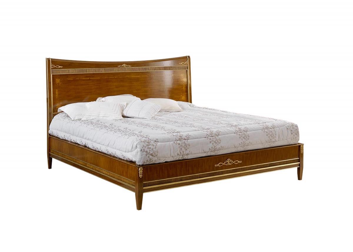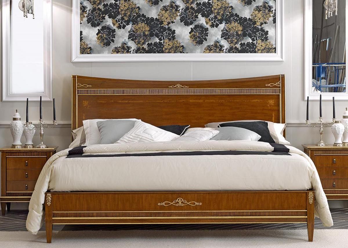 Кровать от премиального итальянского бренда Tosato с каркасом из массива дерева. Кровать с деревянным изголовьем с инкрустацией доступна в различной отделке представленной фабрикой.