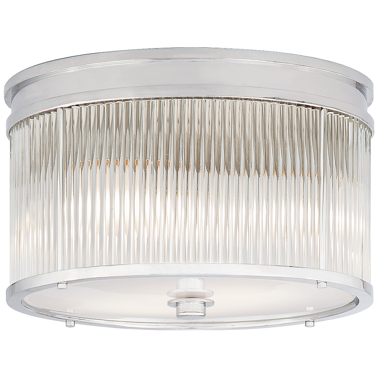 Потолочный светильник Allen от премиального американского бренда Ralph Lauren Home. Минималистичный дизайн светильника представлен стальным корпусом цвета полированного никеля. По окружности оформлен короткими прозрачными стержнями из стекла. Диффузор из белого стекла. Работает от 3 лампочек максимальной мощностью 40 Вт.